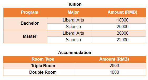If you cannot get Zhejiang government scholarship, you MUST pay full amount school fees. The following is the school fee details.