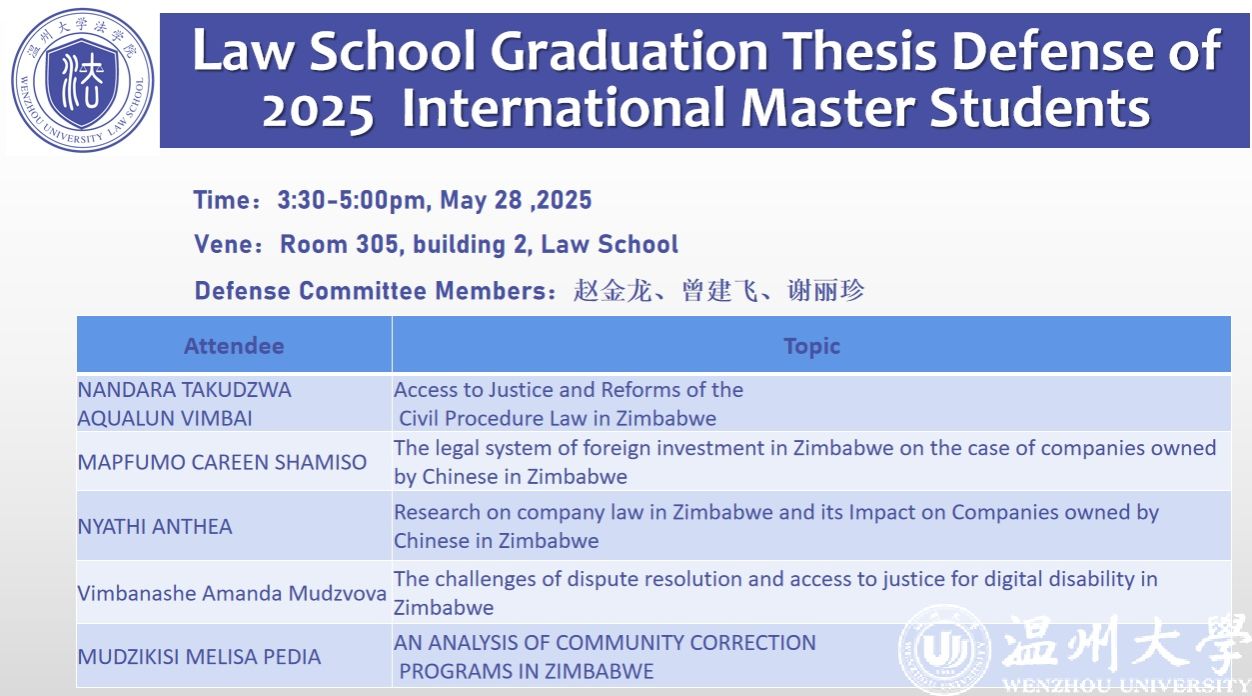 Law School Graduation Thesis Defense of 2025 International Master Students