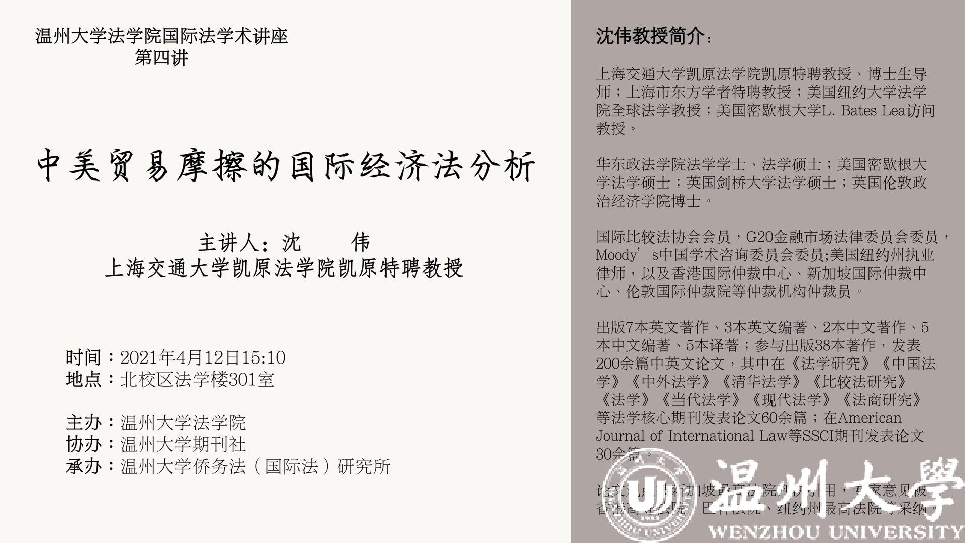 av天堂 国际法学术讲座第四讲——《中美贸易摩擦的国际经济法分析》