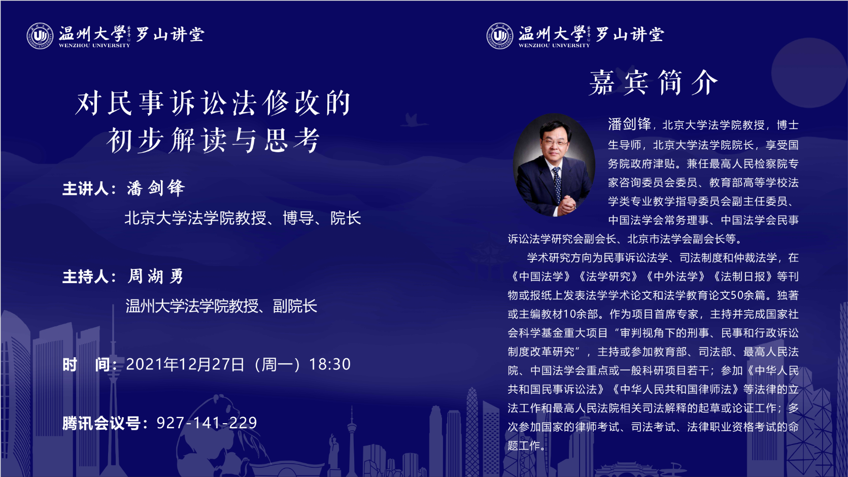 罗山讲堂预告 对民事诉讼法修改的初步解读与思考