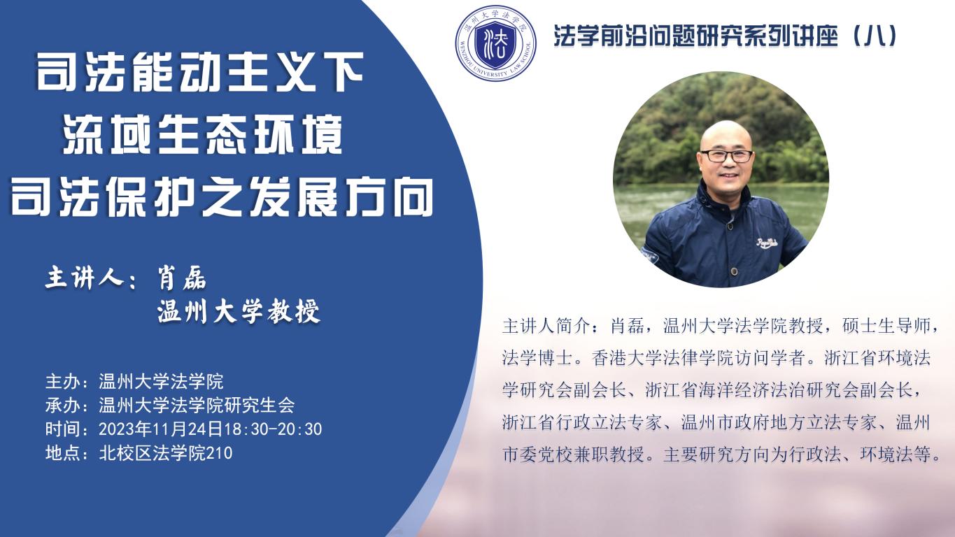 法学前沿讲座预告|肖磊:司法能动主义下流域生态环境司法保护之发展方向