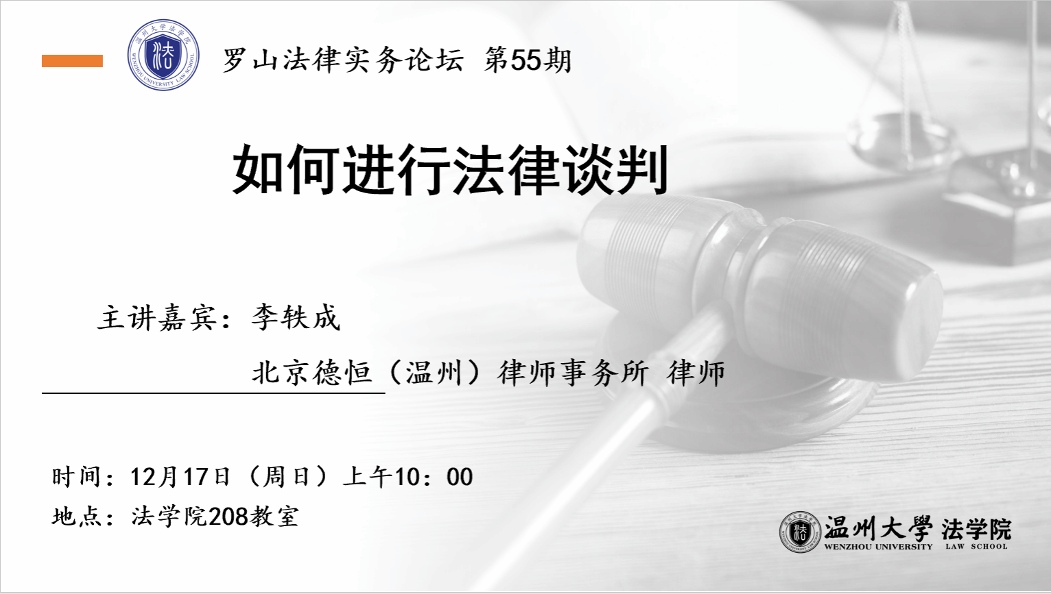 讲座预告丨罗山法律实务论坛 第55期:如何进行法律谈判