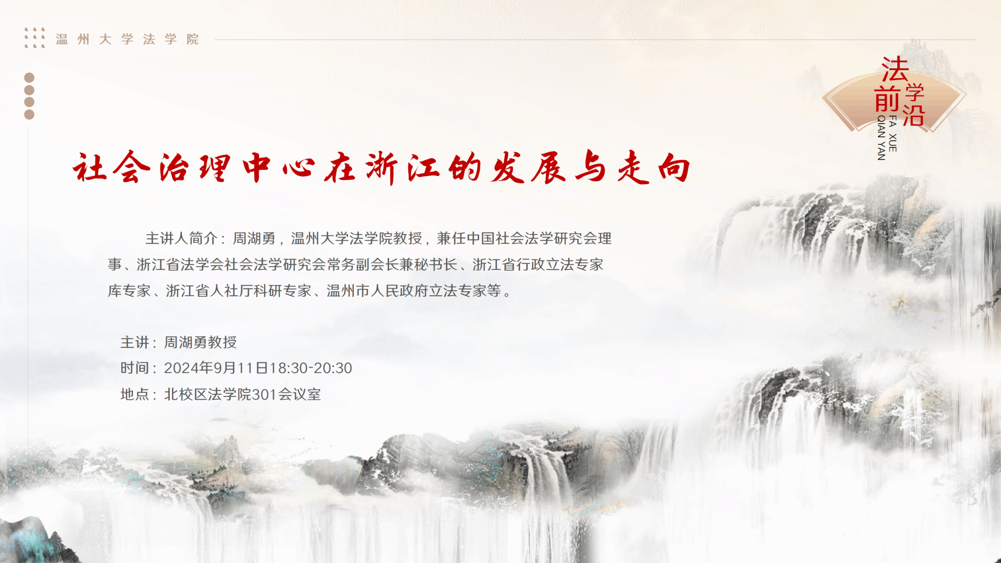 讲座预告|9月11日法学前沿第1讲:社会治理中心在浙江的发展与走向(主讲人:周湖勇)