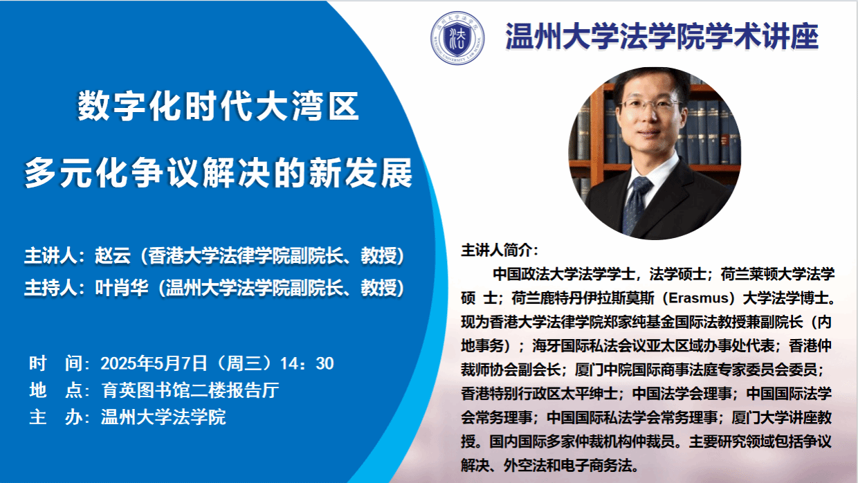 讲座预告|赵云:数字化时代大湾区多元化争议解决的新发展