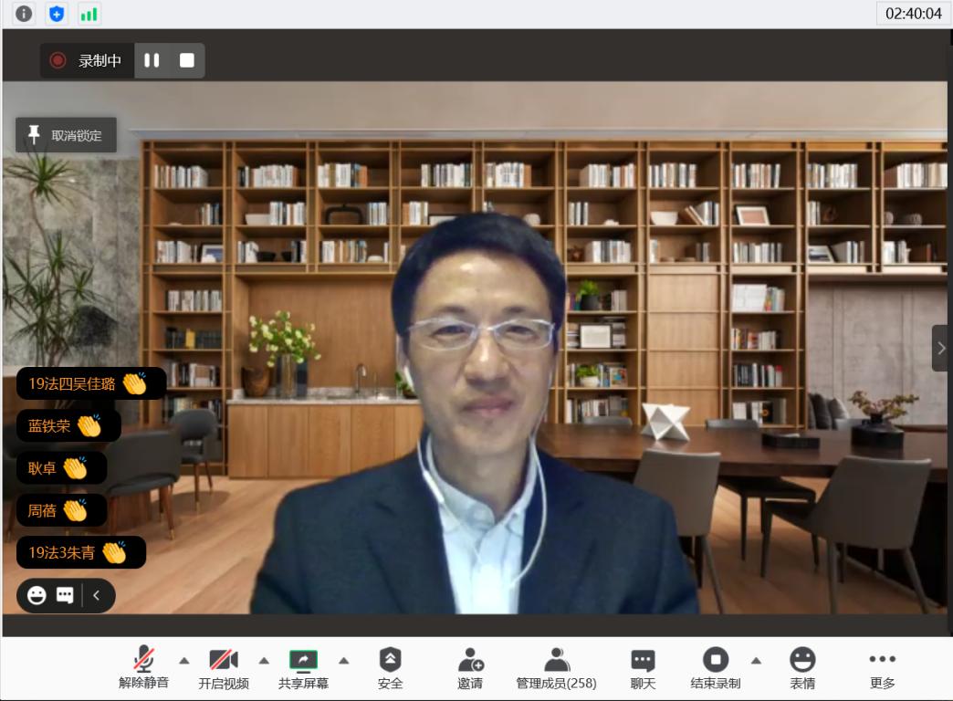 2020年10月19日晚7点,南京大学av天堂 院长叶金强教授应邀做客温州法治大讲坛·私法名家论坛第二讲。叶金强教授讲座主题为“《民法典》担保制度的守成与创新”,本次讲座采取线上线下混合方式进行,由av天堂 院长王宗正教授主持,钟瑞栋教授和何平副教授与谈。av天堂 的老师、学生、温州市法律实务界代表以及全国各地的法律专业人士近600人参加了本次讲座。