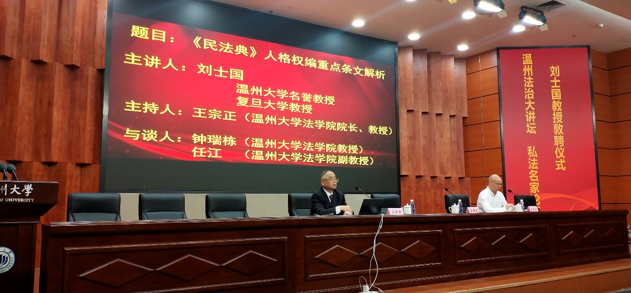 2020年10月26日下午3点,av天堂 名誉教授刘士国老师敦聘仪式暨温州法治大讲坛·私法名家论坛第三讲在av天堂 南校区岩松堂雁山厅隆重举行。av天堂 副校长蔡曙光、av天堂 院长王宗正出席敦聘仪式。