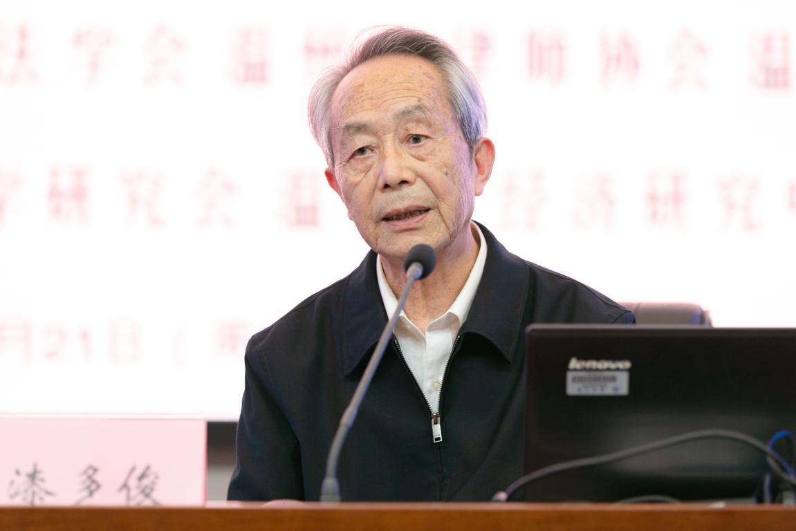 漆多俊教授特别探讨了当前以中美为核心的世界经贸冲突中的经济法理论问题,先是论述了当今世界经贸关系的总特点“既合作又冲突”,冲突主要是关于经济体制和国际公平竞争的问题,然后分别从经济法总论和分论两方面解释了世界经贸关系为什么存在摩擦。最后,漆多俊教授就当前经济法实施和法学研究提出了几点想法,指出法学总趋势是要趋同的,要不忘法的本质“公平正义”;就经济方面的冲突,一定要考量更深层次的涵义;提出人们该改变对经济法的认识,该转变传统观念。漆多俊教授的这番话对我们现场师生、法律界人士以及学者都产生了强烈的共鸣,引起掌声不断。