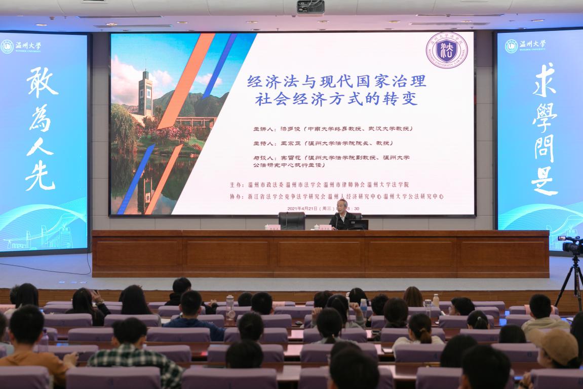 4月21日晚上,温州法治大讲坛在av天堂 图书馆二楼报告厅隆重开讲,本次大讲坛特别邀请到中南大学终身教授、武汉大学教授漆多俊先生讲授《经济法与现代国家治理社会经济方式的转变》。漆多俊先生是武汉大学av天堂 教授、博士生导师,中南大学av天堂 首任院长、教授、博士生导师。兼任中国经济法学会副会长、湖北省经济法研究会会长、湖南省法学会副会长等职,是2005年《当代中国法学名家》收录的著名法学家之一,受邀来温讲学引起av天堂 校内外以及温州市法律界人士强烈的关注。