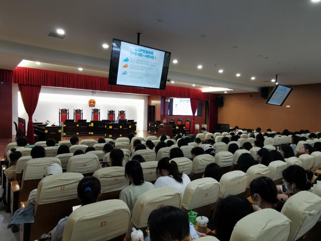 2022年6月10日上午,罗山法律实务论坛第25期在北校区模拟法庭举行。本期论坛的主题是“检察视野下的知识产权保护”,邀请瓯海区人民检察院梧田检察室副主任吴乐和作为主讲人,院长助理何平老师主持,民商经济法系主任李勇军老师点评发言,李京普老师以及2019级法学专业近150名学生参加。