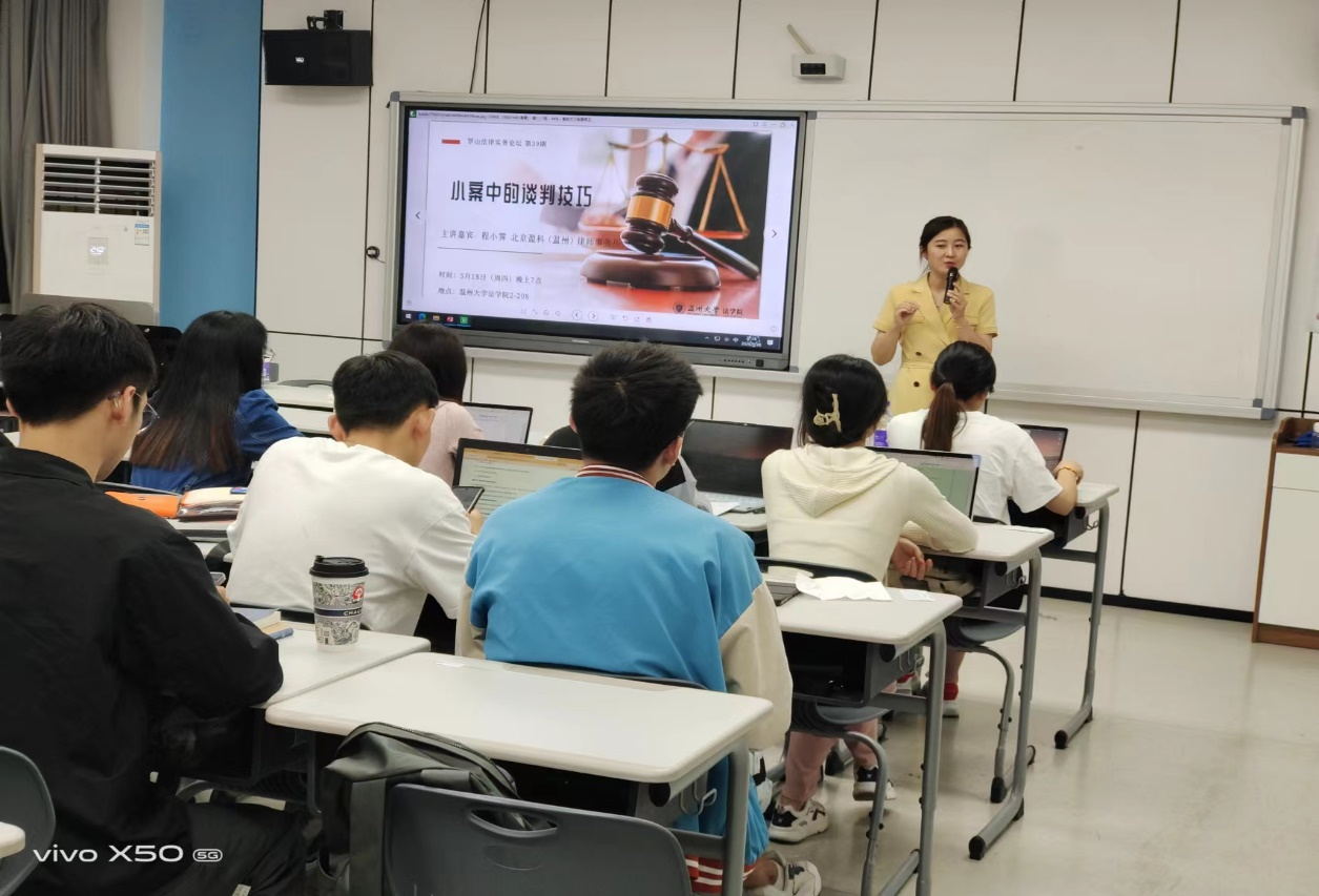 3. 5月18日,北京大成(温州)律师事务所家族信托法律服务中心主任程小霁律师主讲《小案中的谈判技巧》。