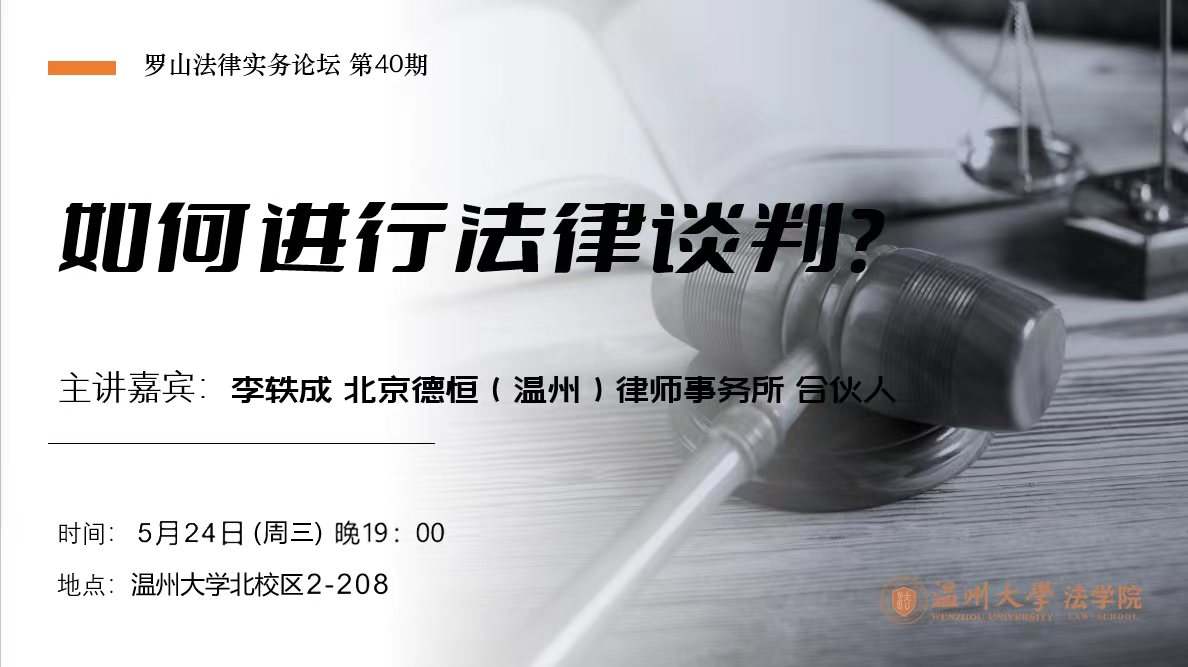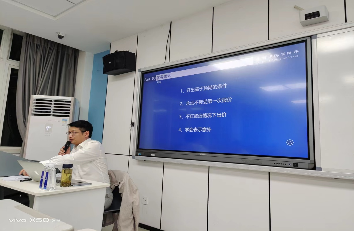 4. 5月24日,北京德恒(温州)律师事务所合伙人李轶成律师主讲《如何进行法律谈判》。