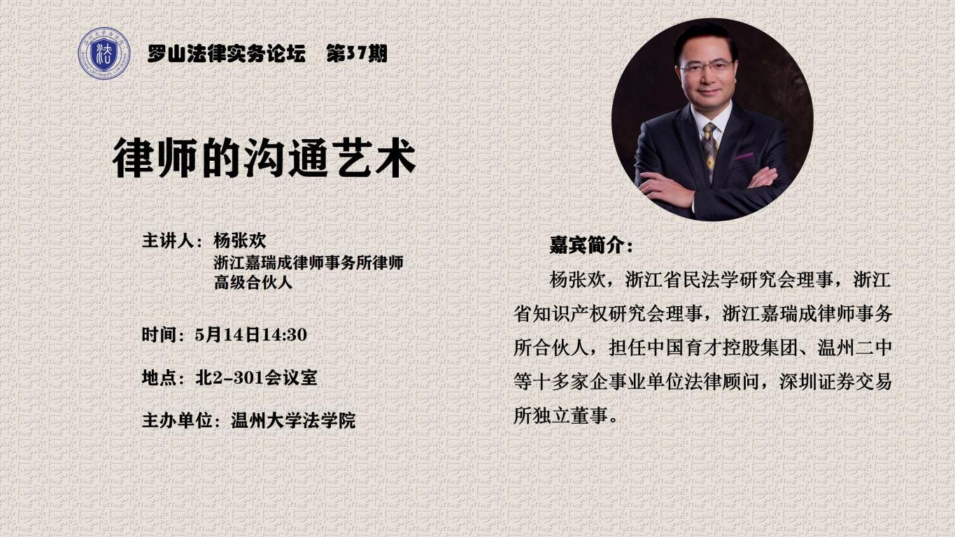 2. 5月14日,浙江嘉瑞成律师事务所高级合伙人杨张欢律师主讲《律师的沟通艺术》。