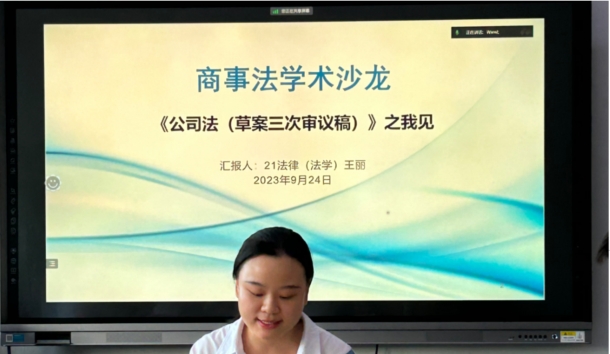 2021级硕士研究生王丽同学主要分析了《公司法(草案三次审议稿)》中关于公司法立法宗旨、企业社会责任、涉及控股股东和实际控制人的规范条款以及公司民主管理制度所做的调整。她认为三审稿注重弘扬企业家精神和增强公司的社会责任,进一步强化了对控股股东和实际控制人的规范,明确了相关主体违反忠实义务和勤勉义务的法律责任。同时,公司的民主管理制度也有创新,强调了工会和职工参与公司的治理,体现了中国特色现代企业制度的完善。此外,就第1条立法宗旨中增加“保护职工的合法权益”的争议,她认为职工作为利益相关者是公司的重要组成部分,在立法宗旨中增加相关表述有利于企业的民主治理,并不会影响公司法的实施效果。