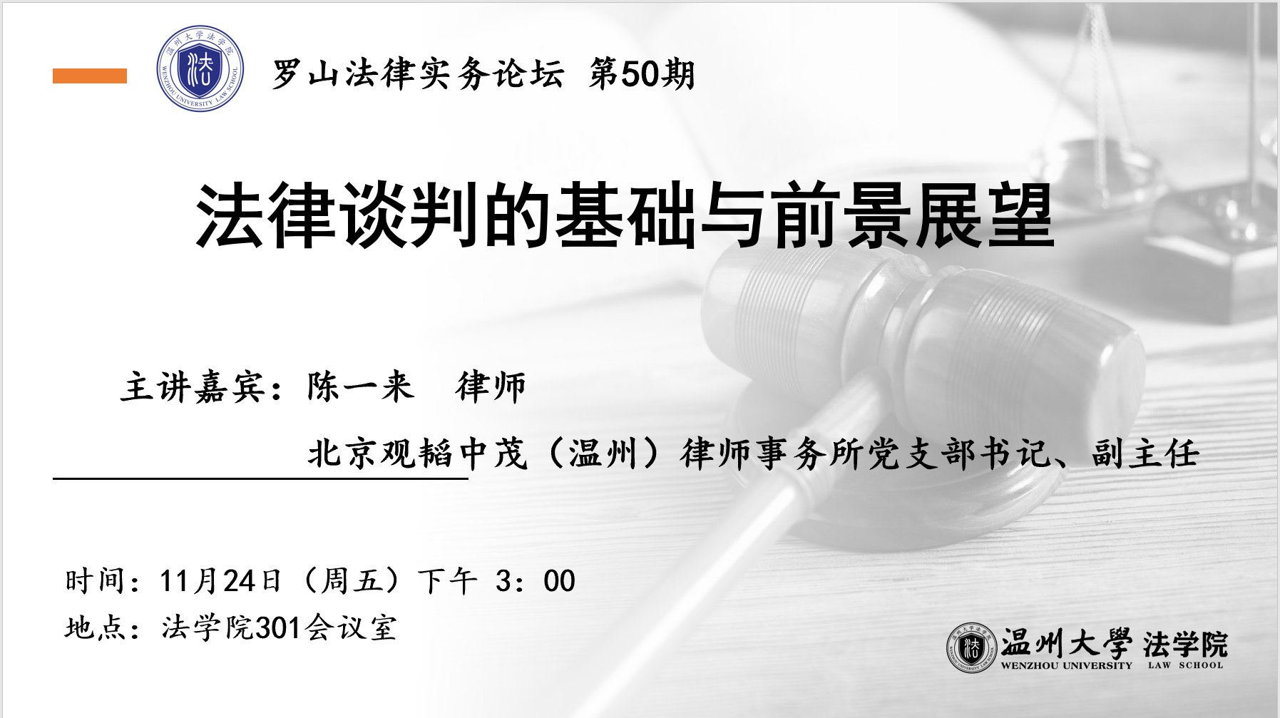 讲座预告丨罗山法律实务论坛 第50期:法律谈判的基础与前景展望