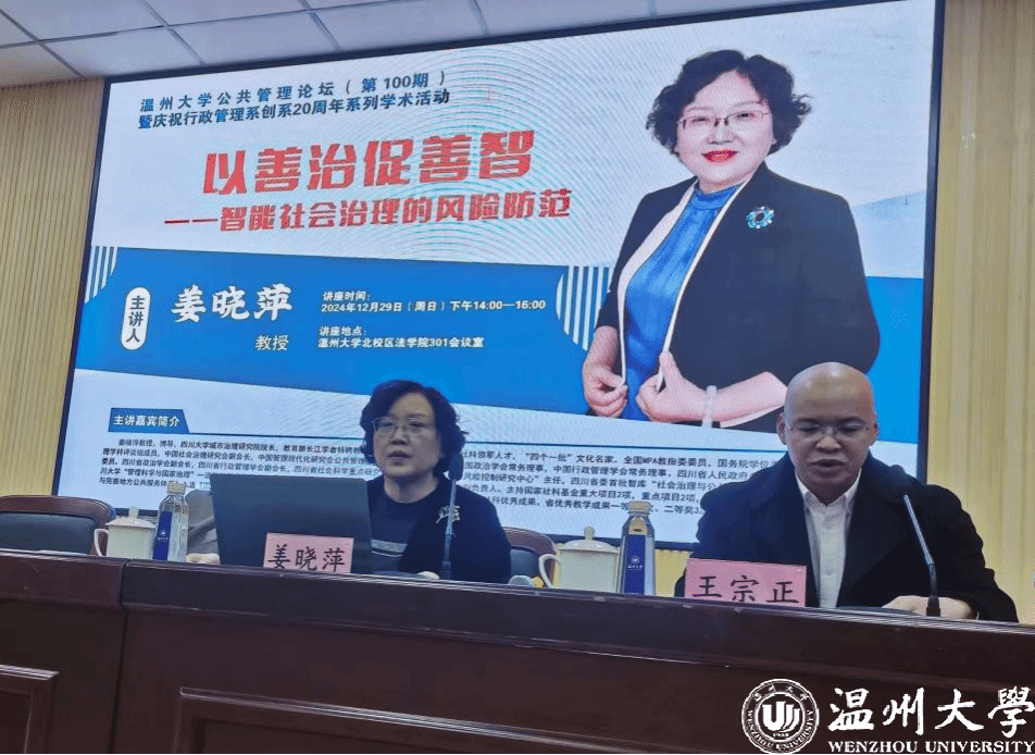 301会议室隆重举行,本次论坛特别邀请到教育部长江学者特聘教授、国家“万人计划”哲学社科领军人才、“四个一批”文化名家、四川大学城市治理研究院院长姜晓萍教授作题为《以善治促善智——智能社会治理的风险防范》学术讲座。讲座由av天堂