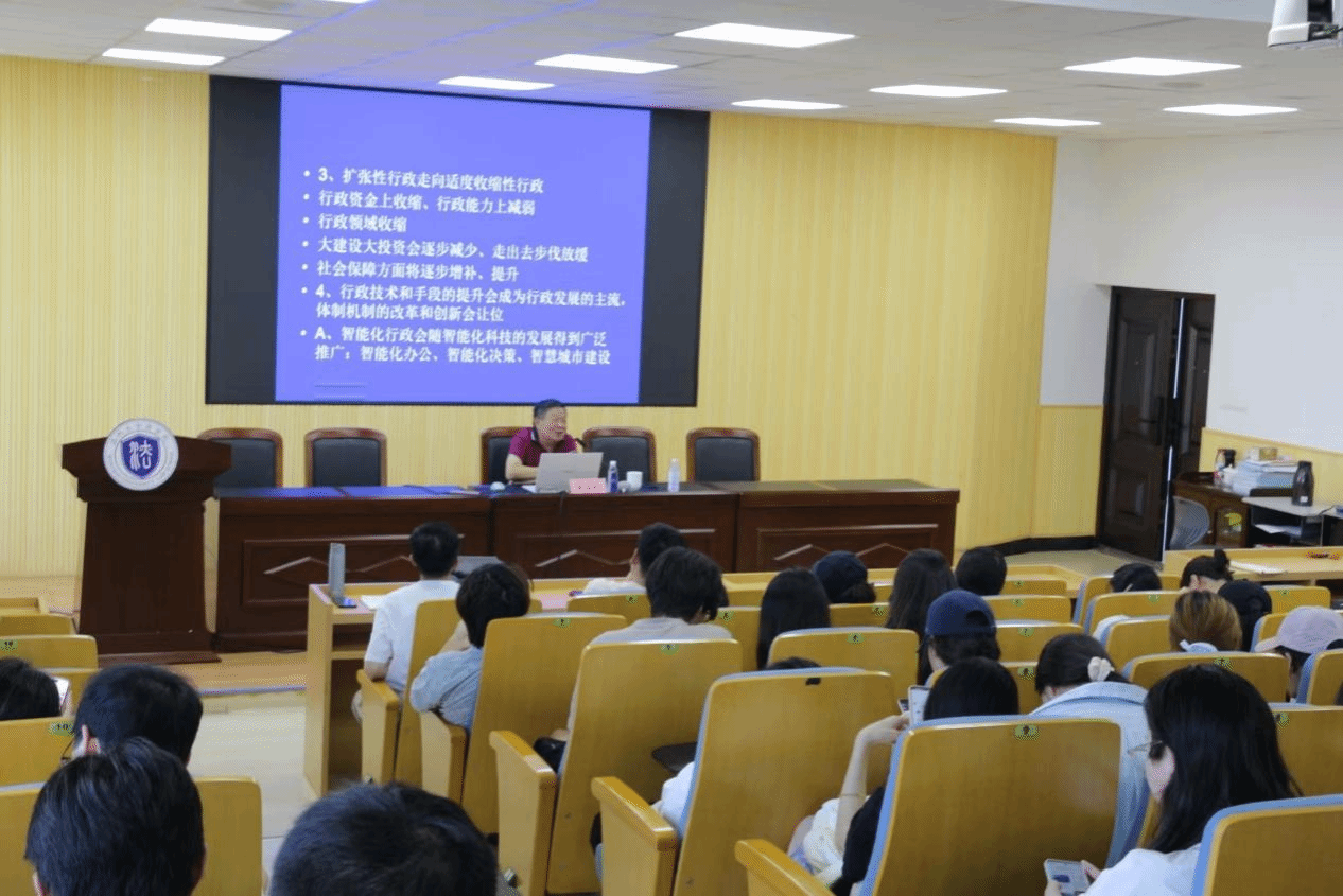 在听完吴教授的讲解后,MPA研究生和行政管理专业的同学们积极提问,吴教授对他们的问题耐心回复,并做出深度剖析,提出殷切期望:首先是要进行知识建构,摒弃碎片化学习,通过系统阅读经典著作,构建专业思维框架,结合案例分析与政策模拟提升实践洞察力。其次是要进行能力培养,重点强化写作、沟通协调与创新能力,尤其关注智能化工具的应用能力储备。最后是要做好职业规划,明确公务员职业的适配性与发展空间,建议有意向者提前备考研究生或者公务员,通过学历提升与结构化知识学习增强竞争力。