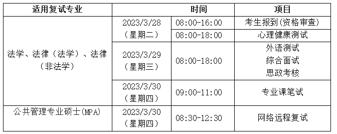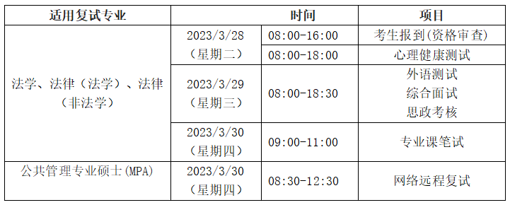2023年研究生招生复试工作日程安排表(一志愿,法学类).xlsx