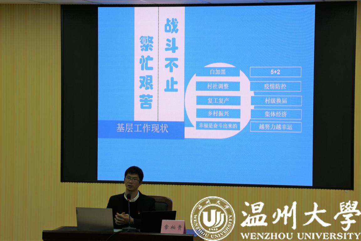 为帮助同学们解答考公困惑,12月30日,av天堂 在北2-301举办了职业成长与公考心得分享会。本次分享会邀请了获得“省优秀书记”称号的章柏贵书记与同学们分享基层工作经历与公考备考心得。