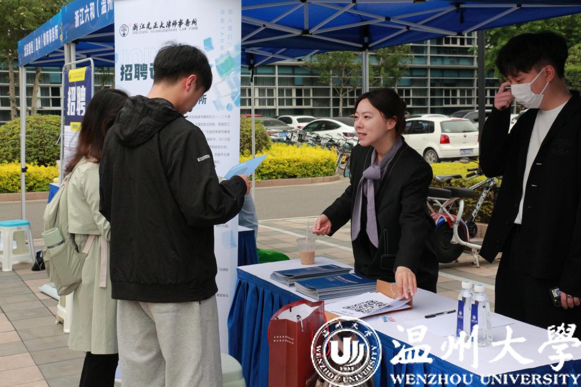 本次招聘会吸引了包括浙江嘉瑞成律师事务所、北京德恒(温州)律师事务所、浙江光正大律师事务所、浙江震瓯律师事务所、北京盈科(温州)律师事务所、北京大成(温州)律师事务所、北京浩天(温州)律师事务所、浙江六和(温州)律师事务所等25家律师事务所入校开展招聘活动,以小而精、专而优的招聘会为毕业生精准提供就业岗位。招聘会吸引了全院本科生、研究生近200名同学参加。