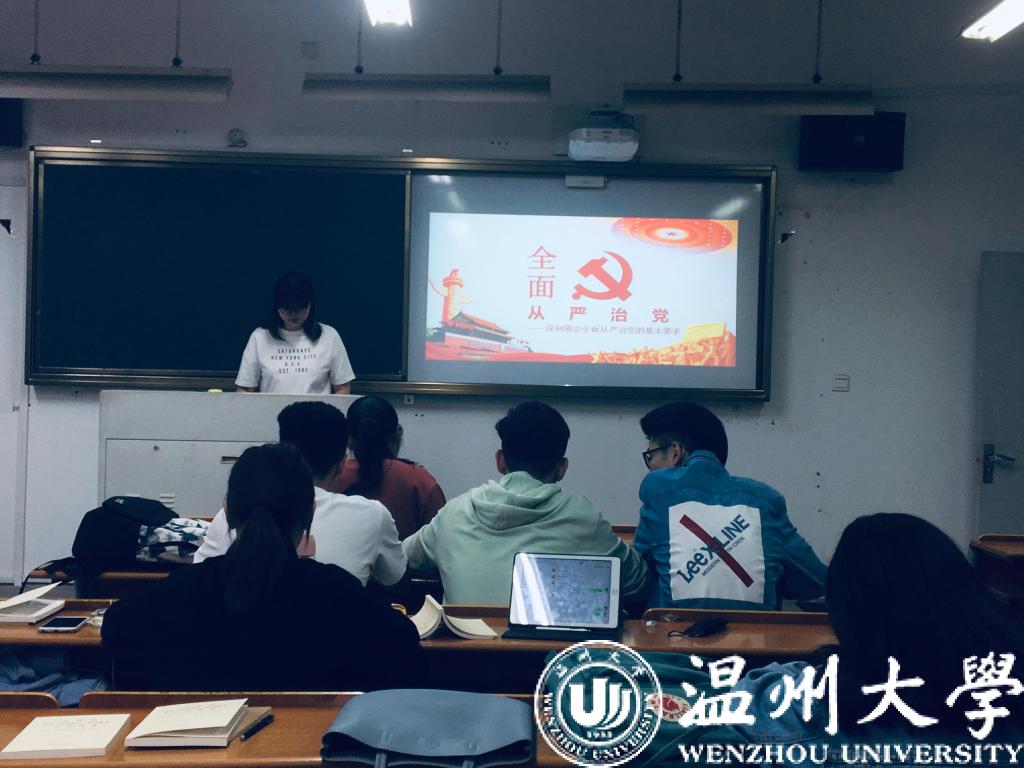治国必先治党,治党必定从严。为进一步提高支部同志的政治素养和思想水平,av天堂 学生第一党支部于2019年10月15日晚在av天堂 305室举行了本学期“不忘初心、牢记使命”主题教育第二次专题学习。本次学习的主题为“全面从严治党”,通过党员汇讲的形式进行交流分享。
