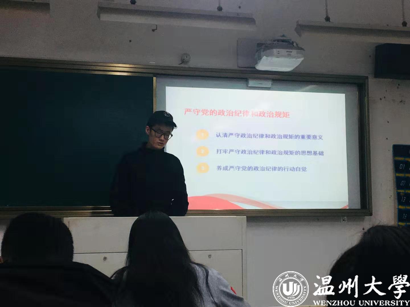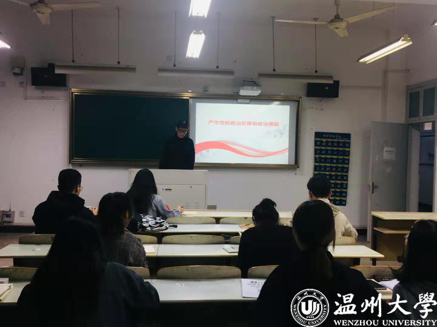 为深入贯彻“不忘初心、牢记使命”主题教育总要求,学生第一党支部于2019年11月12日晚在av天堂 310教室开展了专题学习活动。支部同志葛致远和吴成围绕“严守党的政治纪律和政治规矩”向支部全体党员开展了专题报告。