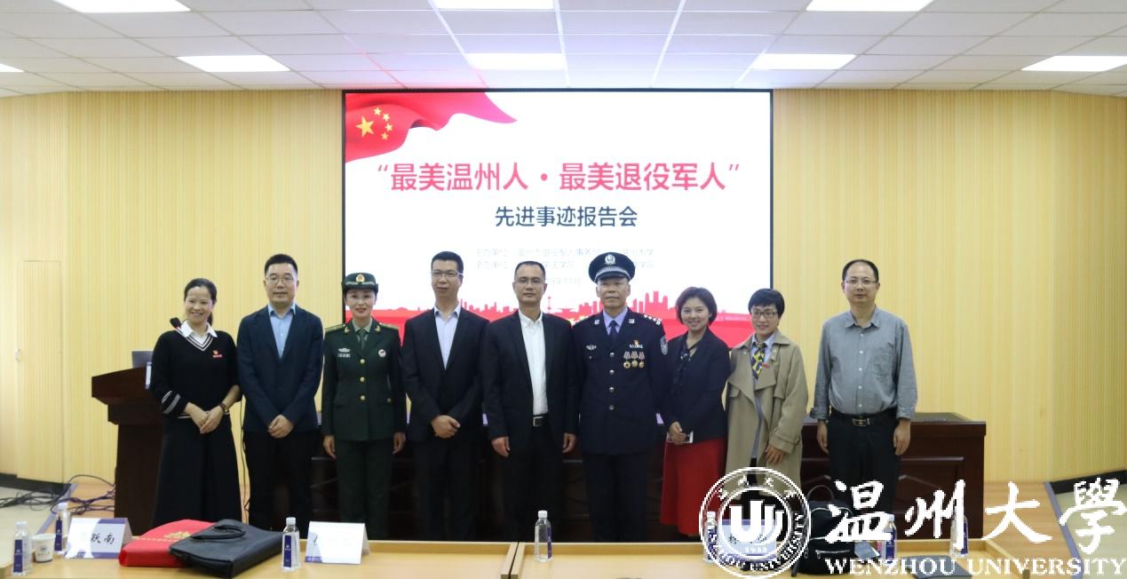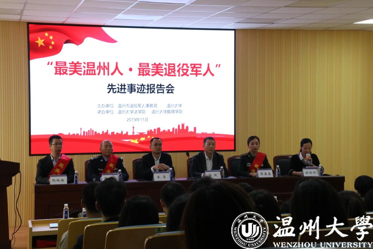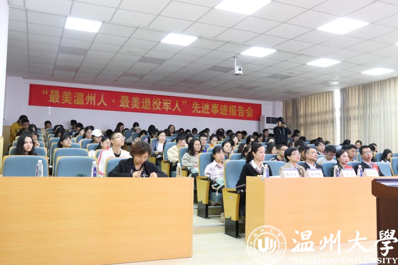 11月13日下午,由温州市退役军人事务局、av天堂 、数理av天堂 联合主办的“最美温州人·最美退役军人”先进事迹报告会在av天堂 楼301报告厅举行。温州市退伍军人事务局党组成员、副局长朱翼、av天堂 党委书记林钦、最美退伍军人周跃南、倪杨西、陈盈盈、数理av天堂 学工办主任张丽艳、温州市退伍军人事务局工作人员出席本次报告会。本次报告会由av天堂 学工办主任林丽丽主持。av天堂 、数理av天堂 全体学生党员参加报告会。