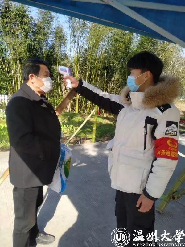家住乐清市芙蓉镇西塍路上村的温大av天堂 研究生党支部入党积极分子薛林蔚同学,于2020年2月17日6时开始参与村里的防疫工作,为打赢疫情防控战,贡献自己一份力量!薛林蔚平常在村口执勤,将拥有出村资格的村民的序号、姓名、出村时间、目的等信息进行登记,待其回村后,记录下该村民的回村时间、测量的体温等。