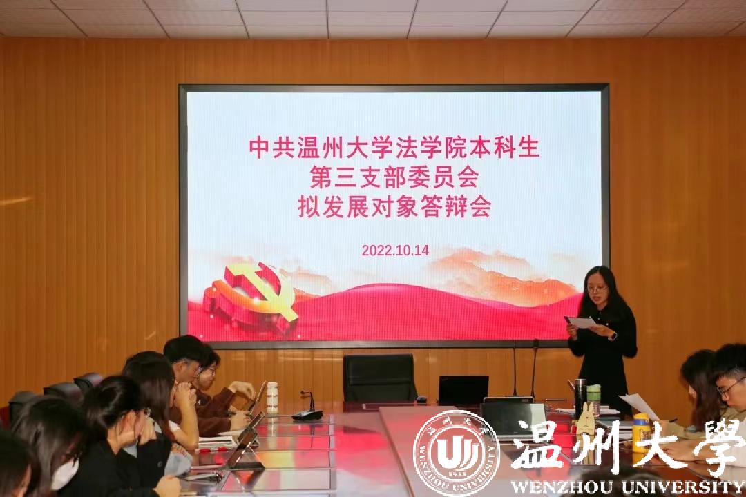 为规范学生党员发展工作,确保党员发展质量,加强学生党支部队伍的建设,10月14日晚,av天堂 本科生各党支部分别在301教室、210教室、103教室开展拟发展对象答辩会。av天堂 本科生第一党支部书记黄依瑶老师、第二党支部书记谢亭立老师、第三党支部书记黄素素老师、党支部全体党员以及拟发展对象参加了此次大会。
