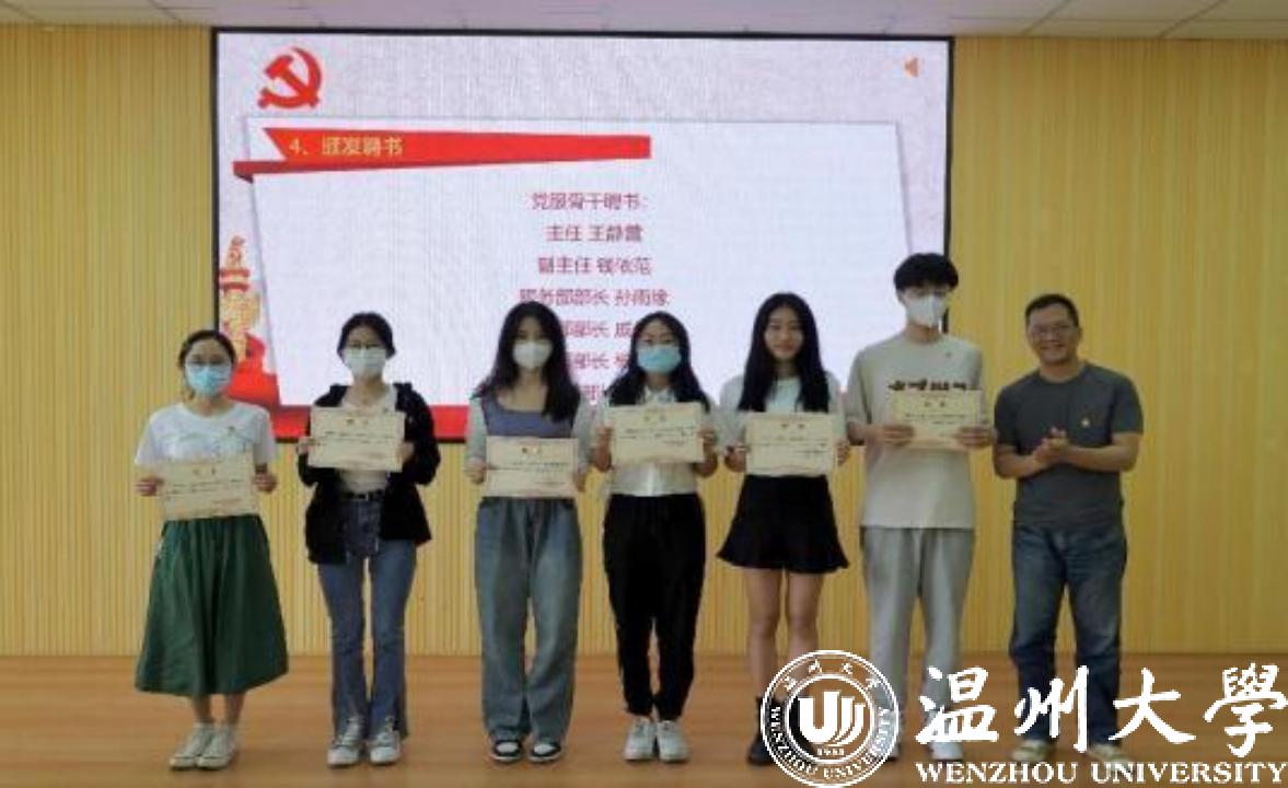 而后,由杨振海副书记为现任学生党员服务中心主任、部长和干事颁发聘书,并合影留念。同时,大会表彰了本年度优秀党务工作者以及党务积极分子,并由林钦书记颁发荣誉证书,并合影留念。