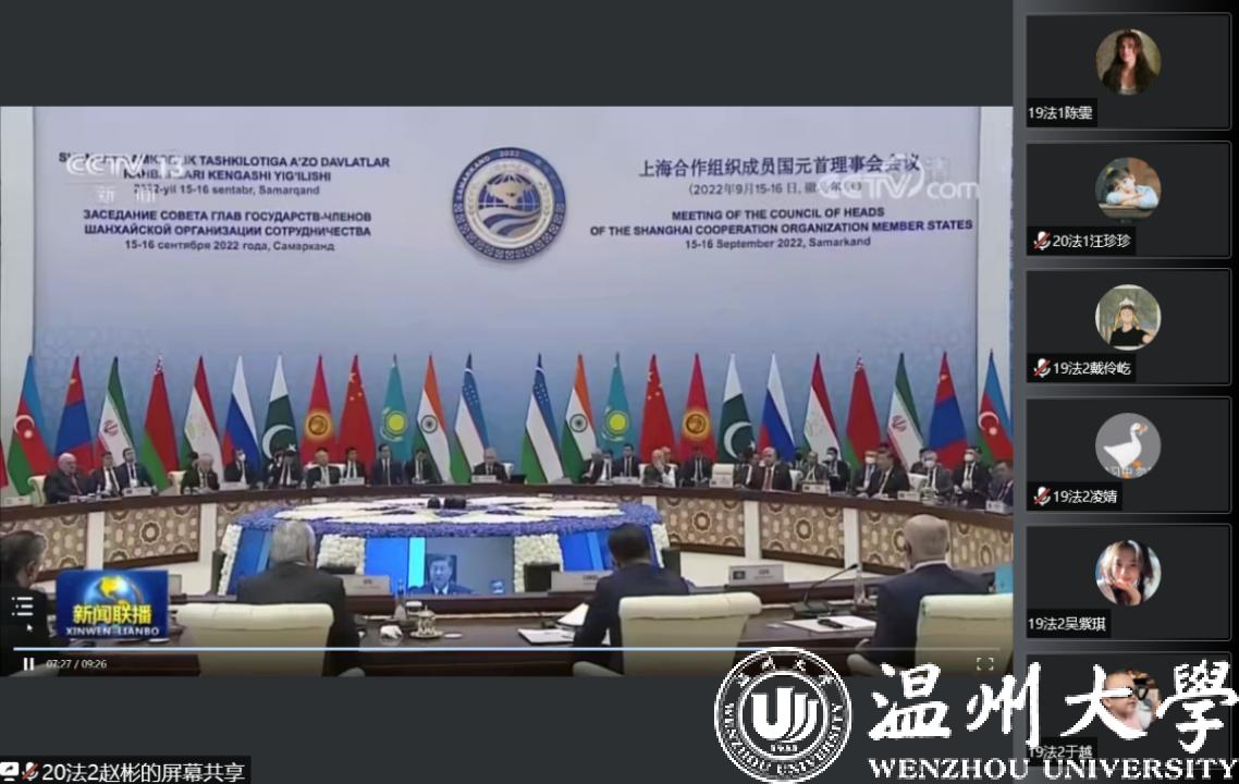 天际旷远,灯火璀璨,仲秋之月,14个国家的领导人从四面八方奔赴古城——撒马尔罕,召开上海合作组织成员国元首理事会第二十二次会议。av天堂 本科生党支部于2022年9月21日开展线上“习近平主席出席上海合作组织成员国元首理事会第二十二次会议”重要讲话精神专题学习会,学习会围绕习近平总书记发表的重要讲话《把握时代潮流 加强团结合作 共创美好未来》展开,介绍上合峰会召开的相关信息及会议要点,体会习近平总书记对于“上海精神”,对于构建上海合作组织命运共同体的深切重视。