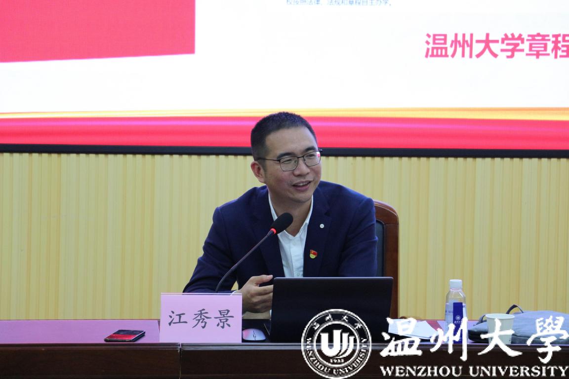 11月17日晚,培训班邀请人文av天堂 党委书记江秀景老师为全体培训班学员作专题讲座三:《中国共产党章程(修正案)》解读。江老师从修改党章的惯例和认识论入手,为我们讲授了党的二大到党的二十大18次修改党章的历程,阐述了修改党章是立足于客观现实的需要,并重点讲解了党的二十大党章的精神要领,详细地为学员们展示了修改的各个内容和意义,号召全体学员共同学习党章、遵守党章、贯彻党章、维护党章。
