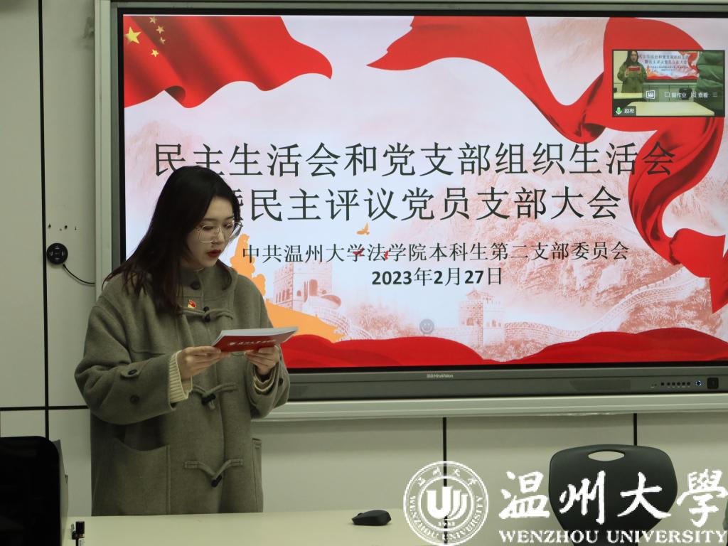2月27日av天堂 本科生第二党支部组织了关于一部一品的活动,在杨靖雯同志的领学下,我们学习了浙江省第十五次党代会、温州市第十三次党代会精神,会议科学谋划了今后浙江以及温州发展的总体要求和重点任务,承载了全省全市人民的期盼,构建了发展的美好蓝图。之后,汪珍珍、杨静雯、吴秋红同志分享了她们的学习方法和经验,帮助我们开展学习计划并提升效率。最后在支部书记的引导下,我们进行了民主评议,通过批评与自我批评和自我评价,更加明确了之后的前进方向。