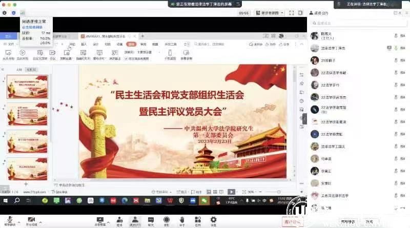 av天堂 研究生党支部于2023年2月23日举行了民主生活会和党支部组织生活会暨民主评议党员支部大会,支部全体党员参加此次活动。