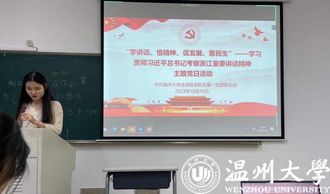 为深入学习贯彻习近平总书记关于主题教育系列重要讲话和在浙江考察时的重要讲话精神,中共av天堂 本科生第一支部委员会结合主题教育,于10月16日av天堂 302教室开展以“学讲话、悟精神、促发展、惠民生”为主要内容的支部主题党日活动。深入学习、全面把握习近平总书记重要讲话的精神实质、丰富内涵和实践要求,进一步激发广大党员干部立足岗位履职尽责,把学习成效转化为干事创业的强大动力,汇聚成续写创新史、走好共富路、争创先行市的磅礴力量。