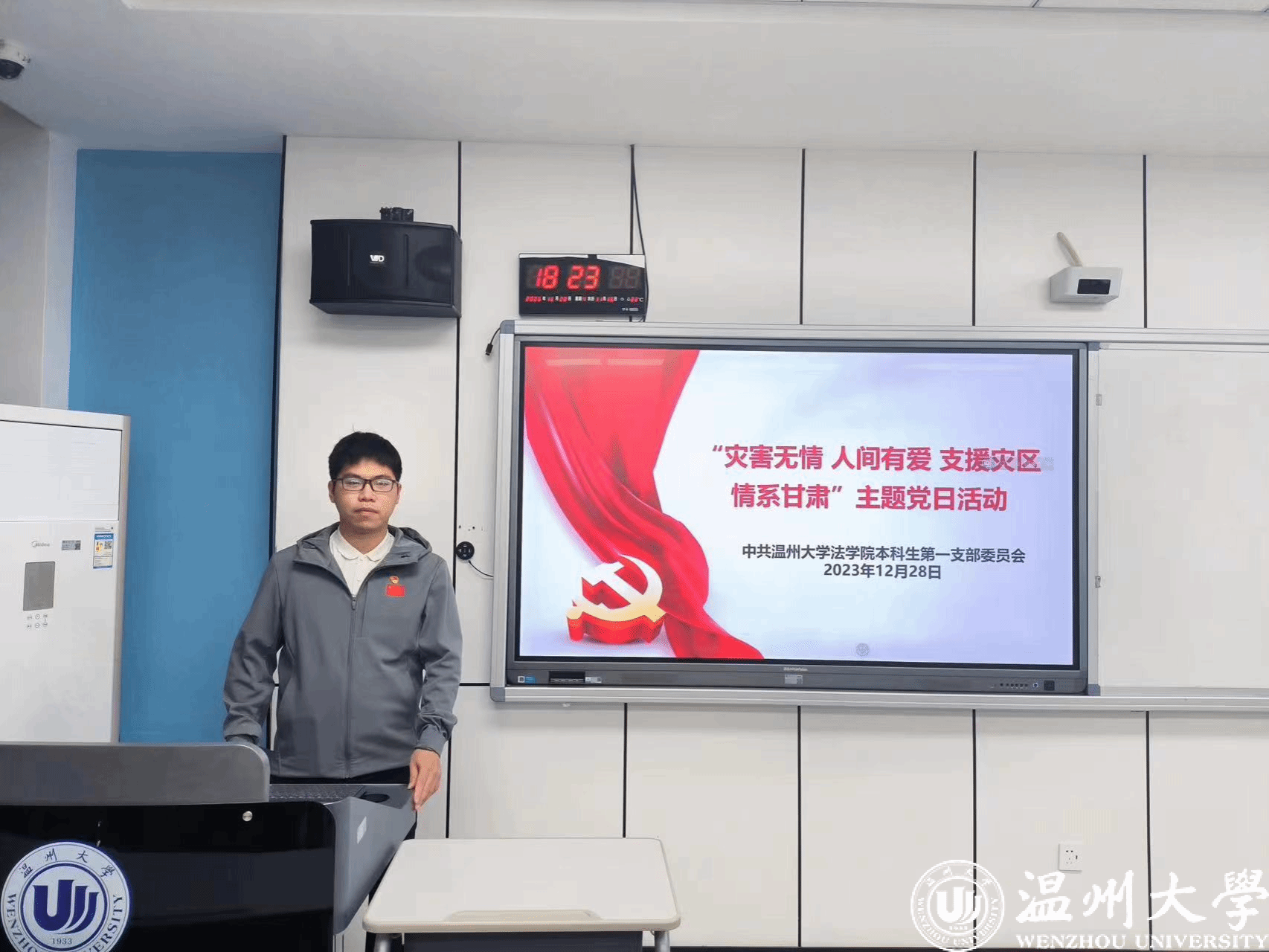 12月18日23时59分,甘肃省临夏州积石山县发生6.2级地震,造成重大人员伤亡。地震发生后,习近平总书记高度重视并作出重要指示,强调“要全力开展搜救,及时救治受伤人员,最大限度减少人员伤亡”“妥善安置受灾群众,保障群众基本生活”“尽最大努力保障人民群众生命财产安全”。中共av天堂 本科生第一支部委员会结合主题教育,于2023年12月28日在av天堂 207教室开展以“灾害无情 人间有爱 支援灾区 情系甘肃”为主要内容的支部主题党日活动。深入学习、全面把握习近平总书记重要指示的精神实质、丰富内涵和实践要求,进一步激励广大党员干部要有冲锋在前,勇担使命的意识,本次主题党日活动由赵昌可同志主持,陈皆儒和潘文昌同志进行分享,支部全体党员参与学习。
