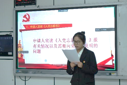第一项议程:由各位申请人宣读《入党申请书》,汇报自己的入党动机、对党组织的认识、本人履历、近期表现等,回顾了近来向党组织努力靠拢的奋斗过程,并且作了详细的汇报。