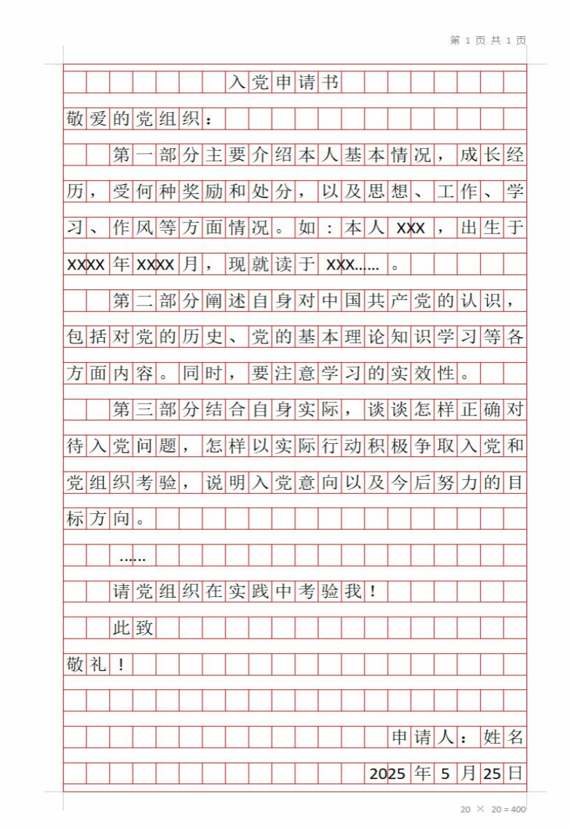 1.入党申请书需用20*20方格纸,黑色钢笔或水笔手写,1500字以上,不得有任何涂改、错别字。