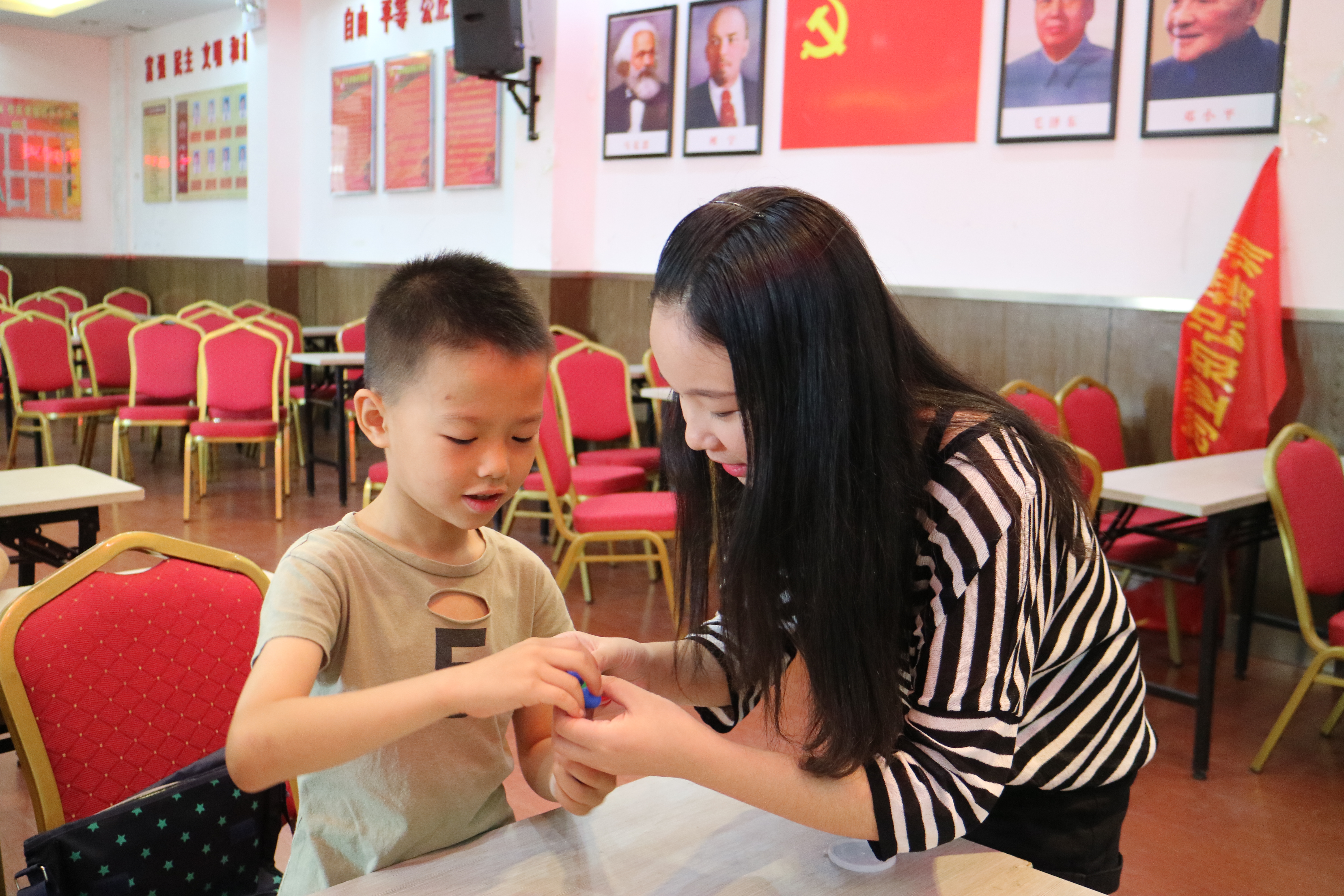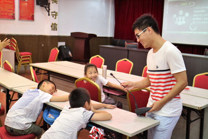 挚情分队致力于建造一个夏令营,夏令营以自我了解、人际交往为主题,为小朋友们开展了丰富多彩的拓展教学活动。其中最受孩子们青睐的是"五毛一块"游戏,由带队成员将事先写好了"价格"的卡纸分发给每一位同学。当音乐响起时,各位同学围成一个大圈走着,当队员喊出价格,他们需要迅速地找到其他同学,抱在一起并且价格加在一起是相应数值。通过这些小游戏,让孩子们明白了人际关系及团队的重要性。
