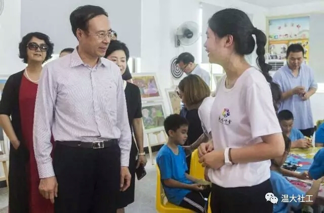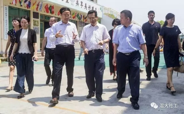 2017年7月11日上午十点,中国侨联主席万立骏、副主席乔卫、秘书长陈迈、浙江省侨联党组书记岑国荣、秘书长周松一、温州市委常委、统战部长施艾珠、市政协副主席、侨联主席谢树华、区委书记李无文、市侨联党组书记林春霞、区委常委、统战部部长吴道静、区人大副主任、区委办主任夏理勇、区政协副主席、侨联主席蒋晖等有关领导莅临七都快乐之家视察工作,由七都街道党工委委员朱小秋为其讲解。