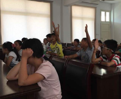 2016年7月15日9点30分,av天堂 法政av天堂 七彩虹环保社会实践队"春泥"支教分队在南塘小学展开了一次别开生面的趣味竞赛,旨在巩固之前学习的环保知识,普及基本的科学常识。本次趣味竞赛以一站到底的形式,采取团体战。五个人为一组,共分为五组。每组先派出一名代表上来参赛,答对就继续进行比赛,答错则淘汰出局,另选择其他组员上来比赛,直到整组淘汰出去为止。其他四组淘汰出局后,剩下的那个组就是最后的赢家。