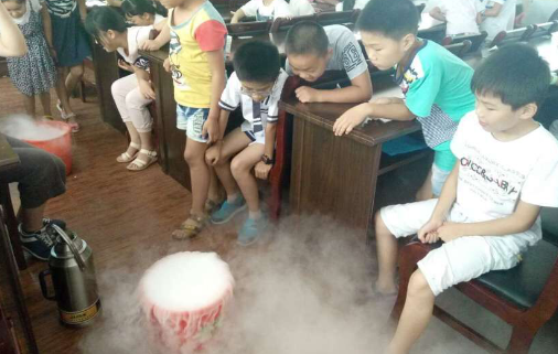 虚无缥缈的仙境,不禁欢呼雀跃,教室成了欢乐的海洋。实验结束以后,孩子们仍然兴奋不已,老师们趁热打铁地给他们讲解了实验原理并拓展介绍了干冰在生活中的其他运用,孩子们认真听讲,积极思考,踊跃发言,课堂效果十分好。
