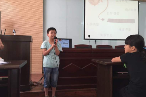 开班仪式结束后,我们就开始了本次实践教学的第一课——少儿礼仪大讲堂。课堂节奏紧凑,笑声不断,在自我介绍礼仪授课结束后,小朋友们纷纷上台进行了自我介绍。还采取"你演我猜"的形式和学生们进行互动,让他们两人一组,抽取校园中不文明现象并表演出来让对方猜。由于同学们十分积极的配合以及小老师的用心备课,这"开学"第一课圆满结束。学生们获得了更多的礼仪知识。
