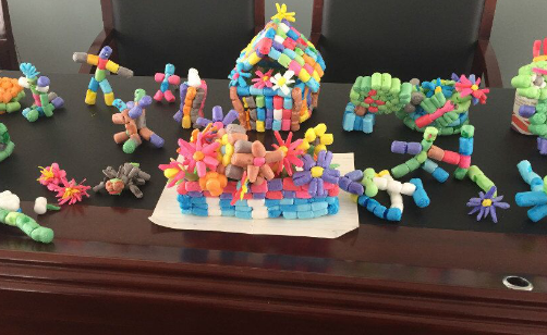 同学们分好组以后在老师的指导下有了许多奇妙的想法,孩子们的世界充满了创造力与童真,这些特点最后都体现在了手工成果上,有的小组制作了麦当劳汉堡、薯条以及可乐,有的小组制作了蜘蛛、蜻蜓以及小甲虫,还有小朋友干脆在课堂上搭建了一栋花园别墅,这些孩子都是未来的建筑师、设计师与艺术家啊!还有好多作品的精美与童趣我完全无法用文字表达。随后,老师邀请每一小组的代表介绍了作品的设计思路以及过程中遇到的问题,同学们愉快地进行着,就像一次轻松的谈天。最后,这些可爱的小天使大方地将手中的作品送给了各位老师,我们的心里是无以言表的感动!