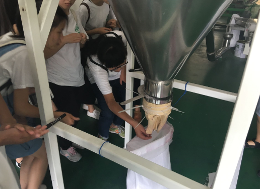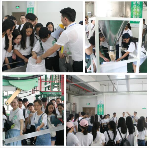 大学生们近距离了解从玉米、大米等原料到环保薄膜、再到产品的生产流程,公司的工作人员现场为大家详细讲解。