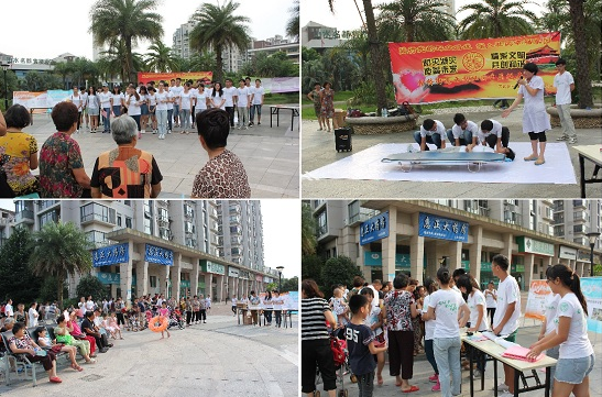 为增强公众的安全意识,大力宣传防灾减灾知识,2015年7月14日下午,在温州市民政局的指导下,瓯海区民政局联合av天堂 "梦夕阳"防灾减灾志愿者分队,在社区山水名都小区举办了一场以 "防灾减灾"为主题的知识宣传活动,同时在"微舞台"举行了一场防灾减灾的知识宣传汇演,现场吸引了几百名观众前来观看。