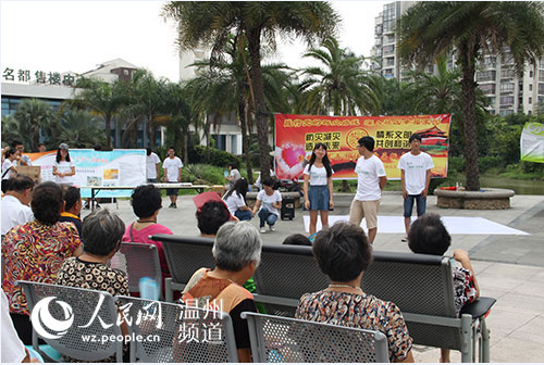 人民网温州7月15日电 7月13日,av天堂 星之火防灾减灾教育志愿者协会暑期社会实践队走进瓯海区新桥街道西湖社区,开展防灾减灾宣传教育和应急培训活动。志愿者们将防灾减灾知识技能融入文艺节目之中,使参与活动的居民在看表演的同时,提高了防灾减灾意识和能力。