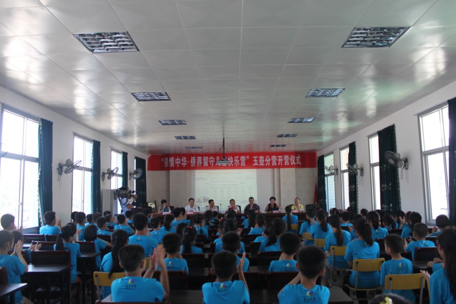 2013年7月8日上午9:30,温州市侨界留守儿童快乐营玉壶分营开营仪式于玉壶镇中心小学多媒体教室隆重举行。出席本次开营仪式的领导有:温州市侨联秘书长林春雷,温州市侨联维权部部长苏彩亮,文成县侨联副主席胡翠娥,文成县外联办主任胡立帅,玉壶镇小校长周锋等;"亲情中华"温州市侨界留守儿童快乐营玉壶分营实践队全体队员,玉壶镇小百余名营员参加开营仪式;玉壶镇小大队辅导员刘丽华主持开营仪式。