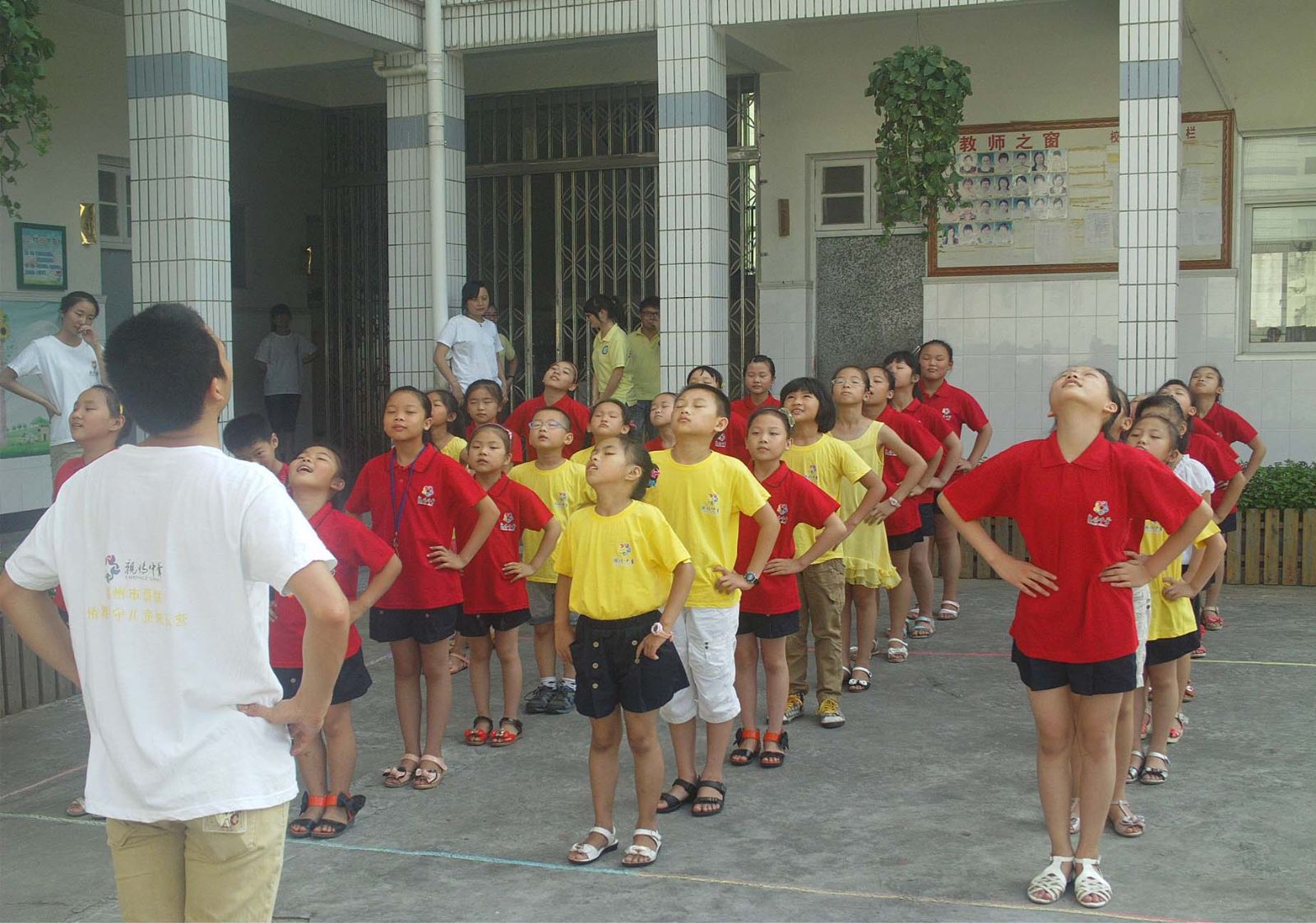早上暖阳初露笑靥,我们就开始踏步晨阳,伴着淡淡的微风,奔向了远在丽岙的留守儿童快乐分营实践队。一路上我们都在翘想当我们踏入那所学校时,会是怎样的光景。结果是令人欣慰的。环境是那么的优雅,教学楼采用了空中楼阁般的植物装扮,显现出一派盎然的绿意;孩子们是那么的快乐,脸上充满朝气,调皮可爱至极;老师们也不逊其色地荡漾着无比青春的光彩。老师疼爱学生,学生爱戴老师,相互之间相处得是何等的其乐融融。今天我们恰好赶上了小同学们放松畅玩游戏的一天。我们的实践队员也忘乎所以地加入其中和他们一起玩,感受喜悦的冲击。太阳日渐猛烈的时候,我们就移位教室,和小学生们一起看电影,趣味浓厚。