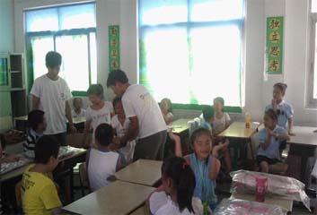 在开幕仪式上侨联负责人代表讲话,预祝本次活动取得圆满成功;温大党委书记代表讲话,调动温大莘莘学子们的活动热情;志愿者代表发言,表明了参与本次活动的志愿者的斗志及决心;最后开营仪式在侨联负责人授予分营队旗的音乐中结束。十点钟,志愿者在准备好自己的随身物品以及活动中的一些物品后乘车出发至营地。我们丽岙分营到达营地后在校方的安排下进住,整理好了自己的生活物品之后与地方侨联主席共进午餐就开始陆陆续续准备下午小朋友来报道的有关事项。下午13:30之前小朋友们迫不及待来到学校迎接我们,在登记了他们的个人基本信息后,我们将侨联准备的精美礼品分发给了小朋友后就和他们开始玩起了诸多互动性极强的小游戏,我们不要井然有序的课堂气氛,只要其乐融融的课堂气氛,小朋友们都尽兴其中。15:30以后,队们将注意事项讲了之后,小朋友才依依不舍地回家了。