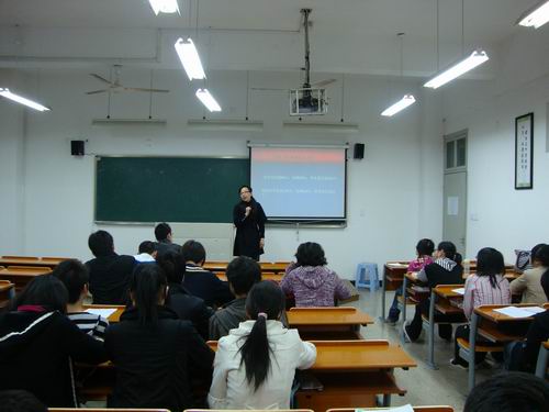 4月7日晚,法政av天堂 09-10学年第二学期入党积极分子培训班第四次培训如期在2-111教室举行,由av天堂 党总支副书记严玲红老师以党建实务为主题为大家进行了讲解。